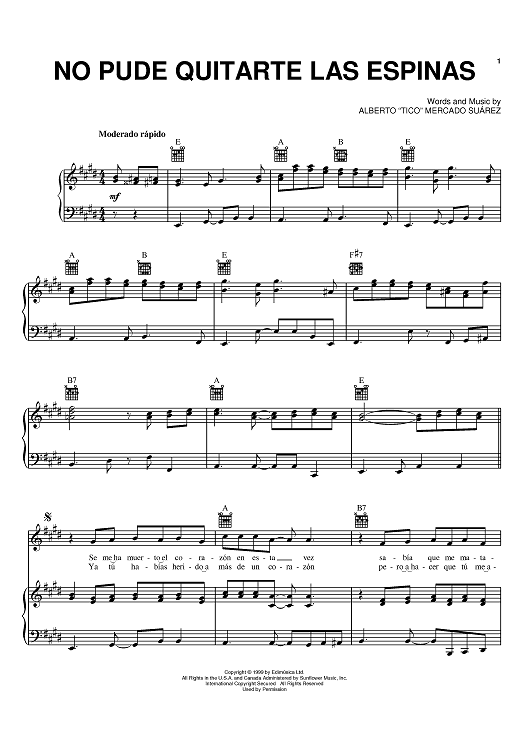 "No Pude Quitarte Las Espinas" Sheet Music by Alberto 'Tico' Mercado Suarez