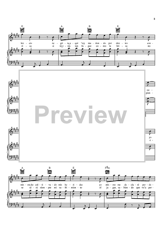 Digital Sheet Music for No Pude Quitarte Las Espinas by Alberto 'Tico' Mercado Suarez scored for Piano/Vocal/Chords; id:370455