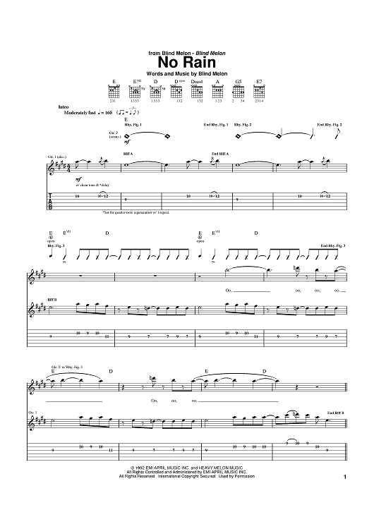 Digital Sheet Music for No Rain by Blind Melon scored for Guitar Tab; id:372904