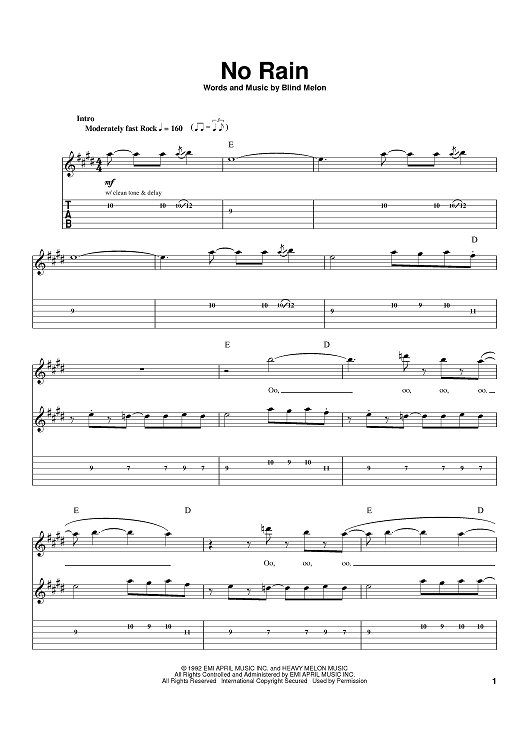 Digital Sheet Music for No Rain by Blind Melon scored for Guitar Tab; id:401558