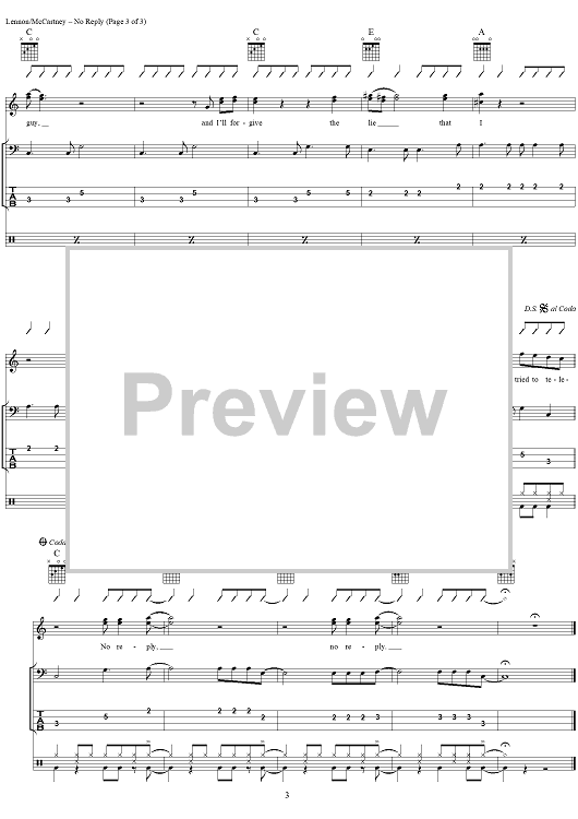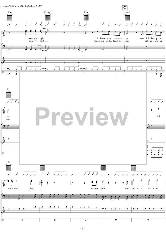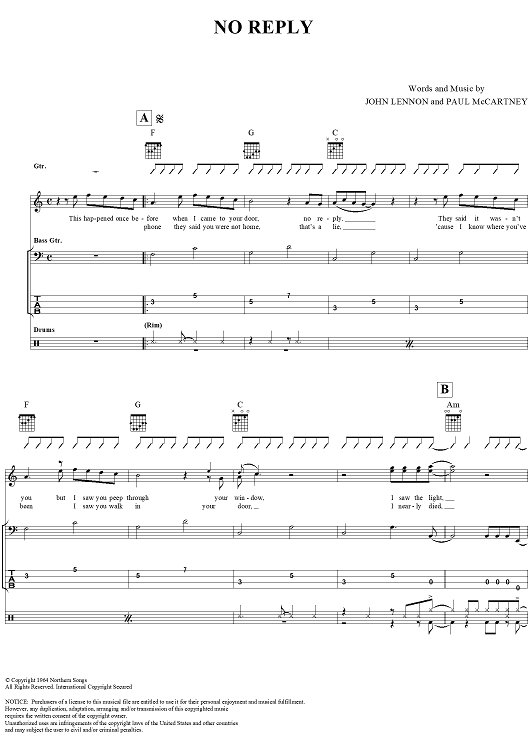 "No Reply" Sheet Music by The Beatles