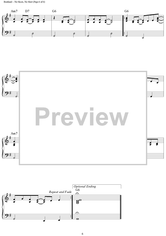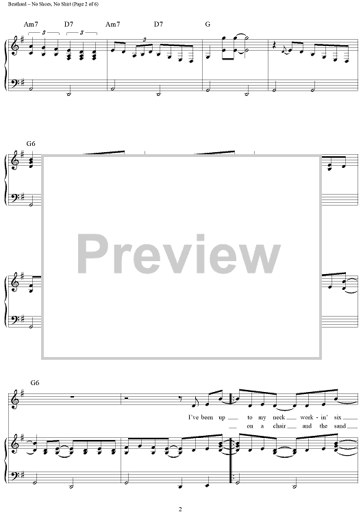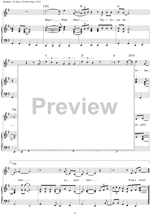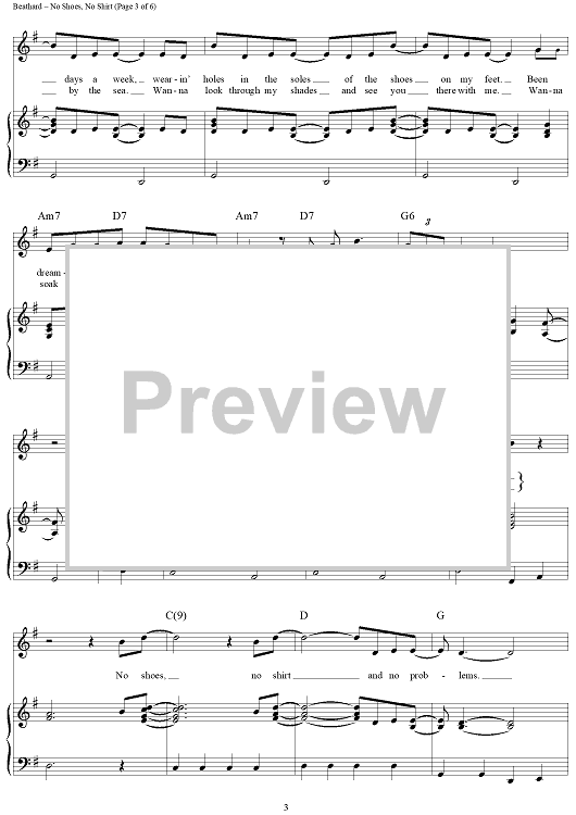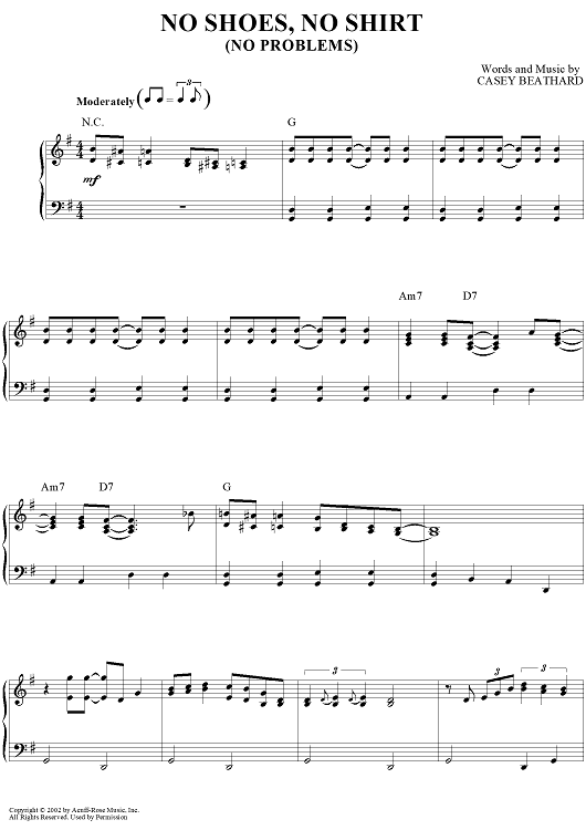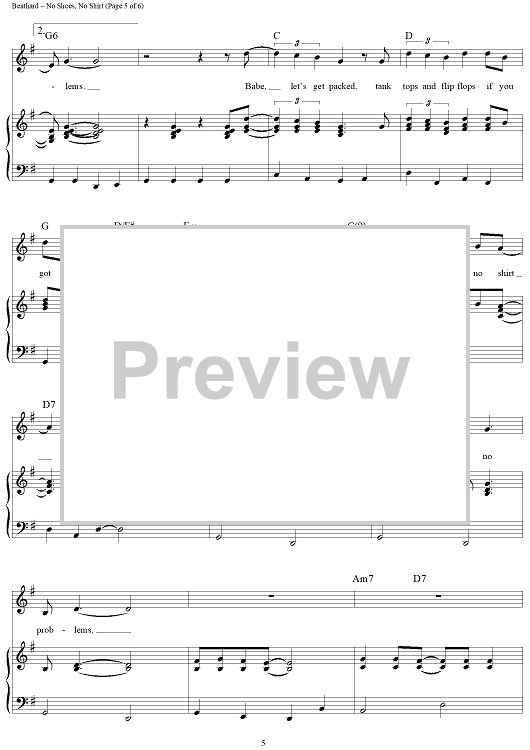 Digital Sheet Music for No Shoes, No Shirt (No Problems) by Kenny Chesney, Casey Beathard scored for Piano/Vocal/Chords; id:365439