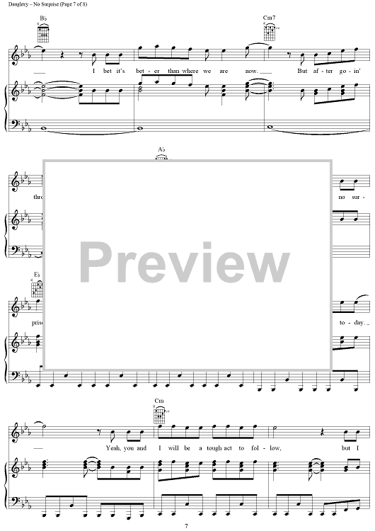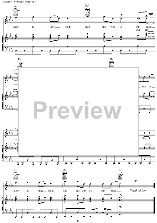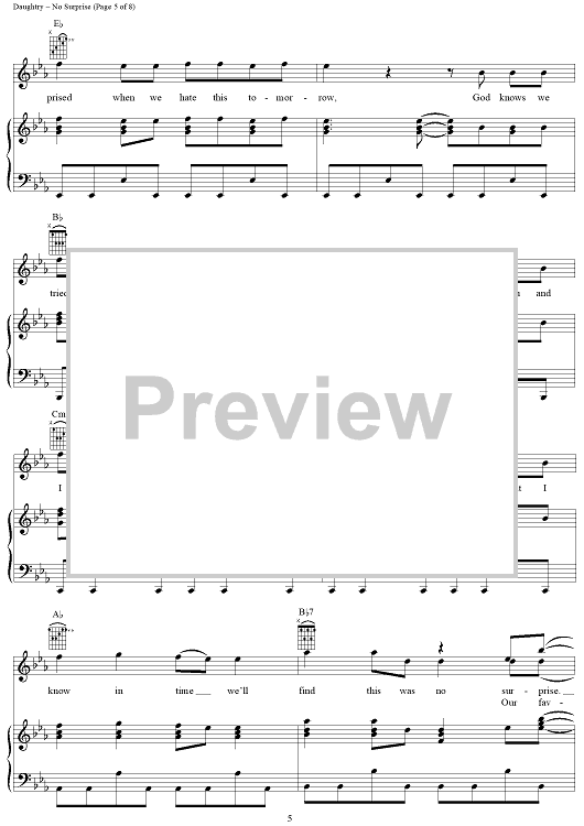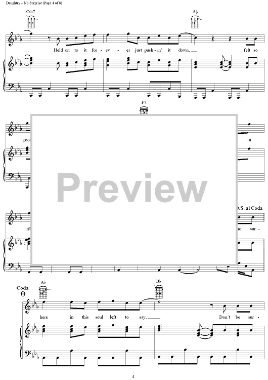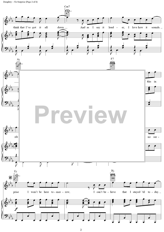 Digital Sheet Music for No Surprise by Chris Daughtry scored for Piano/Vocal/Chords; id:406681
