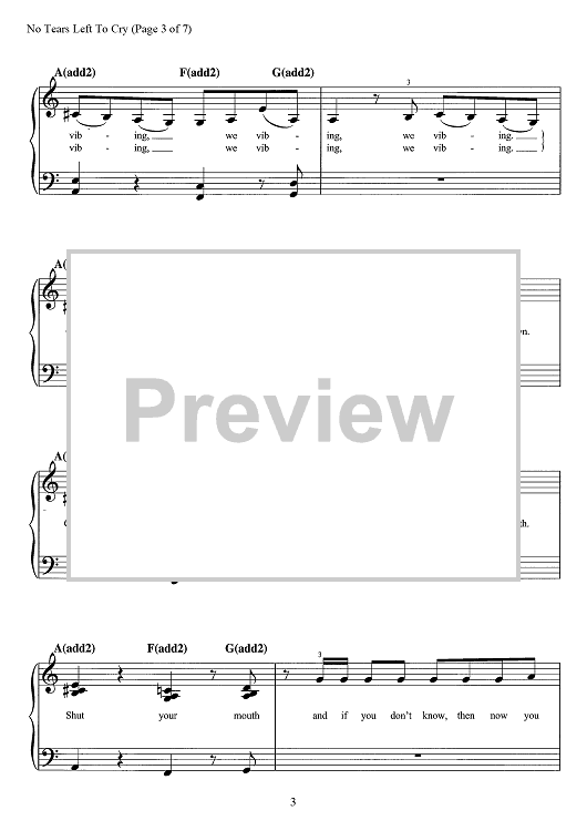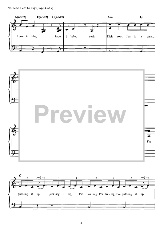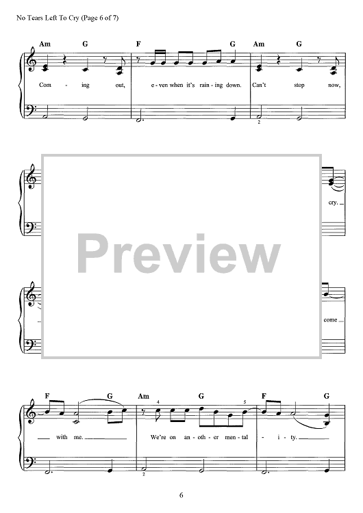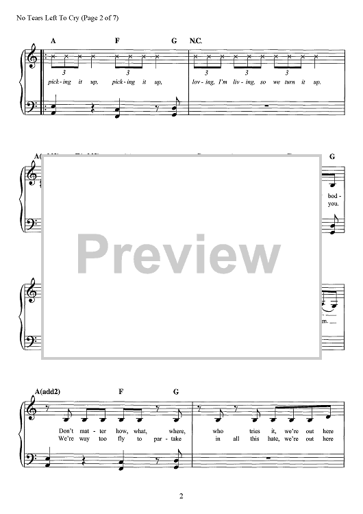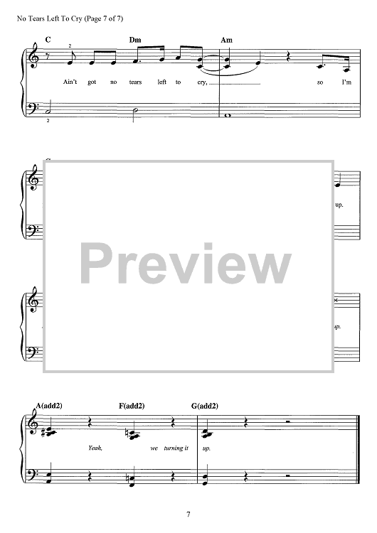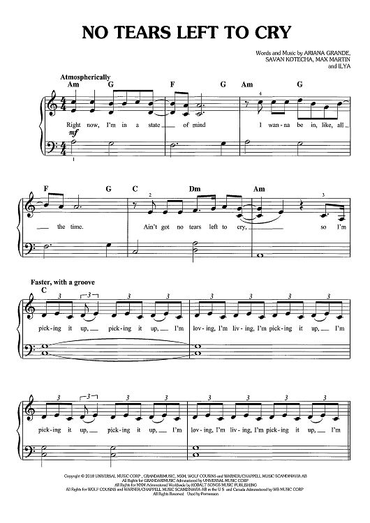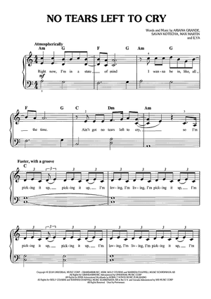 Digital Sheet Music for No Tears Left To Cry by Max Martin, Savan Kotecha, Ariana Grande, Ilya scored for Easy Piano/Vocal/Chords; id:466844