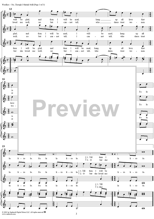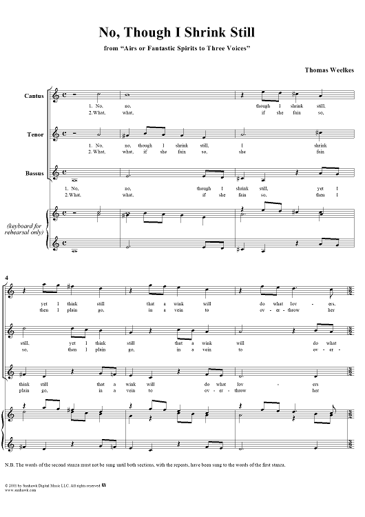 Digital Sheet Music for No, Though I Shrink Still by Thomas Weelkes scored for Mixed Chorus; id:262486