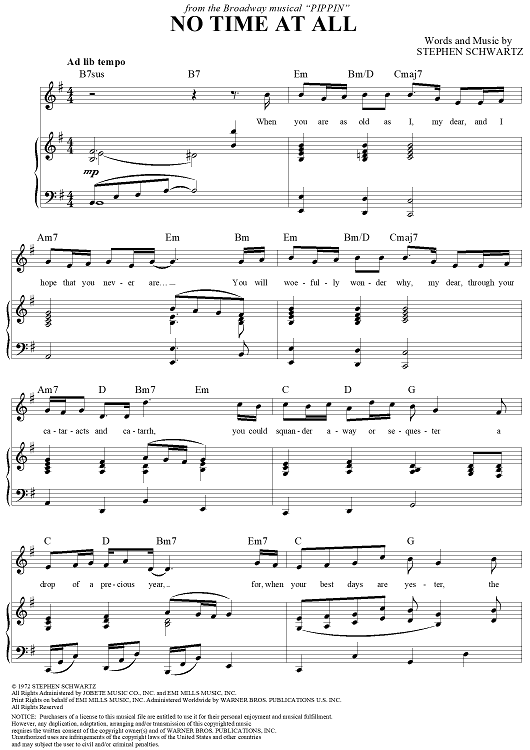 Digital Sheet Music for No Time At All by Stephen Schwartz scored for Piano/Vocal/Chords; id:112925