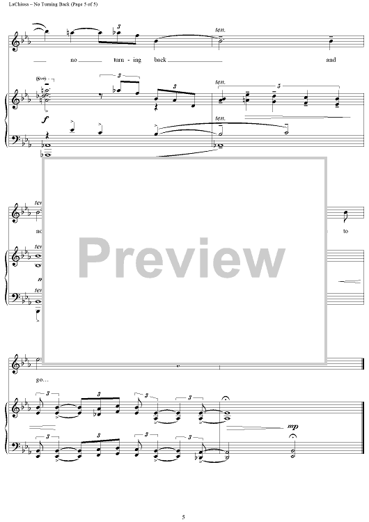 Digital Sheet Music for No Turning Back by Michael John LaChiusa scored for Piano/Vocal; id:170129