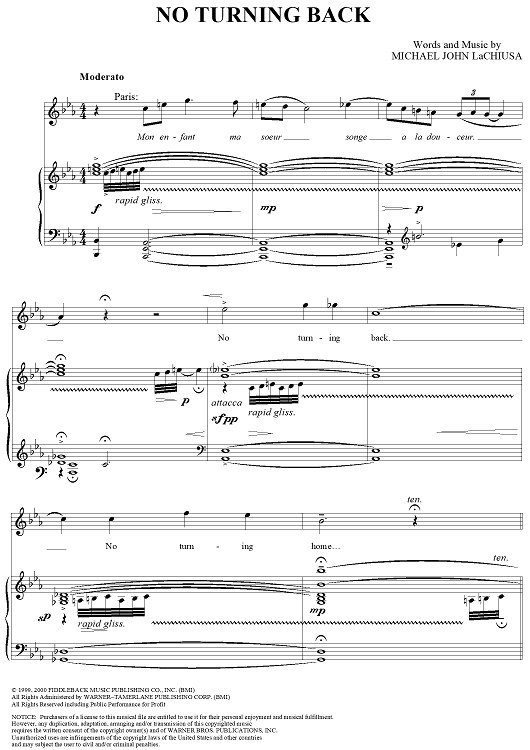 "No Turning Back" Sheet Music by Michael John LaChiusa