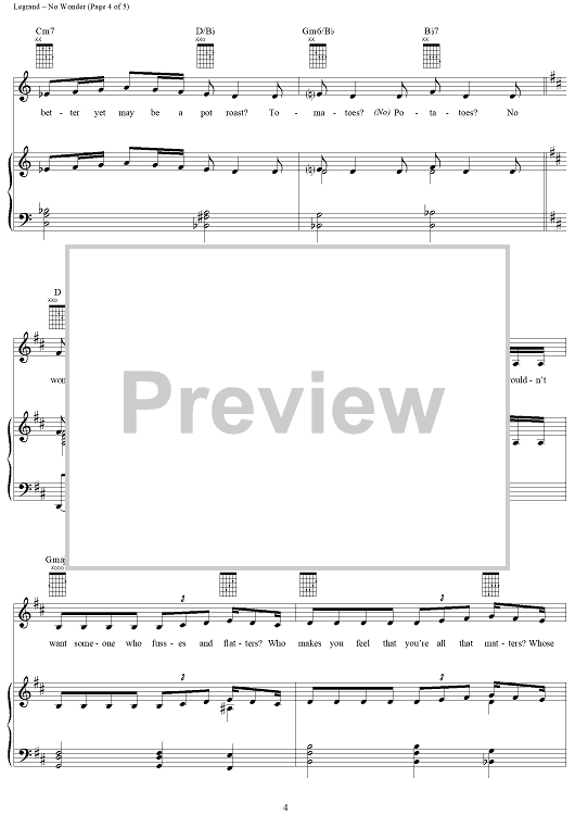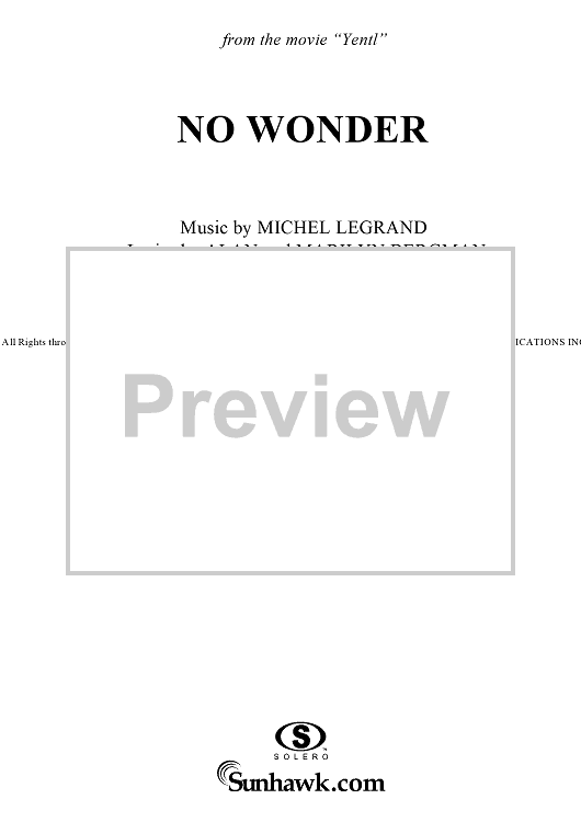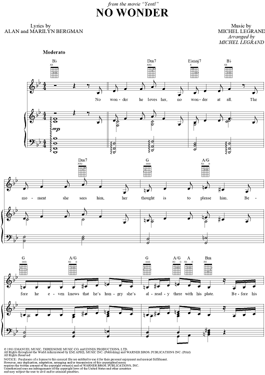 Digital Sheet Music for No Wonder by Michel LeGrand, Alan Bergman, Marilyn Bergman, Barbra Streisand scored for Piano/Vocal/Chords; id:203886