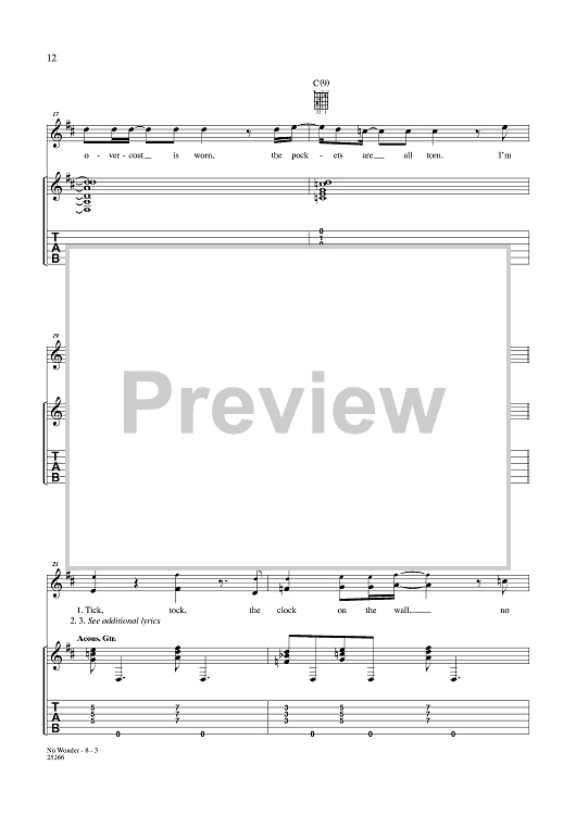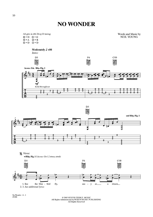 Digital Sheet Music for No Wonder by Neil Young scored for Guitar Tab/Vocal; id:359893