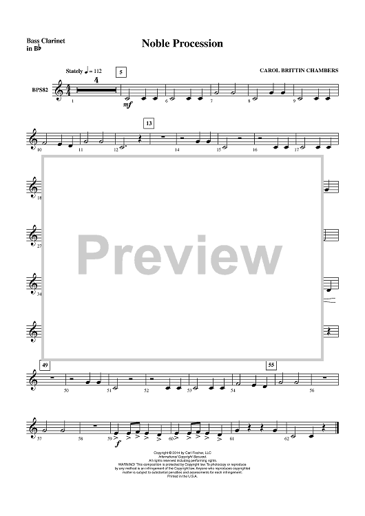 "Noble Procession - Bass Clarinet in Bb" Sheet Music by Carol Brittin Chambers