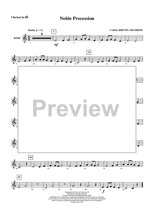 "Noble Procession - Clarinet in Bb" Sheet Music by Carol Brittin Chambers