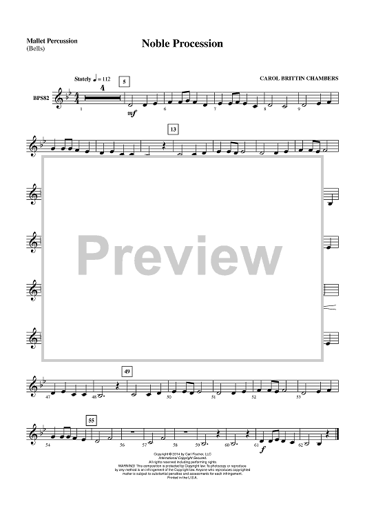 Digital Sheet Music for Noble Procession - Mallet Percussion by Carol Brittin Chambers scored for Concert Band; id:450708