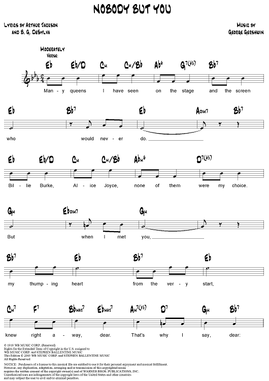 Digital Sheet Music for Nobody But You by George Gershwin, Arthur Jackson, Buddy DeSylva scored for Lead Sheet; id:308352
