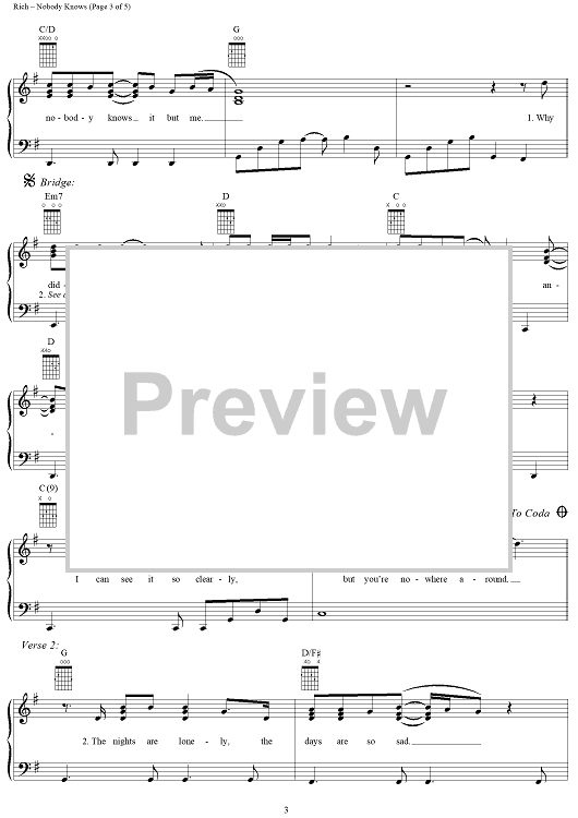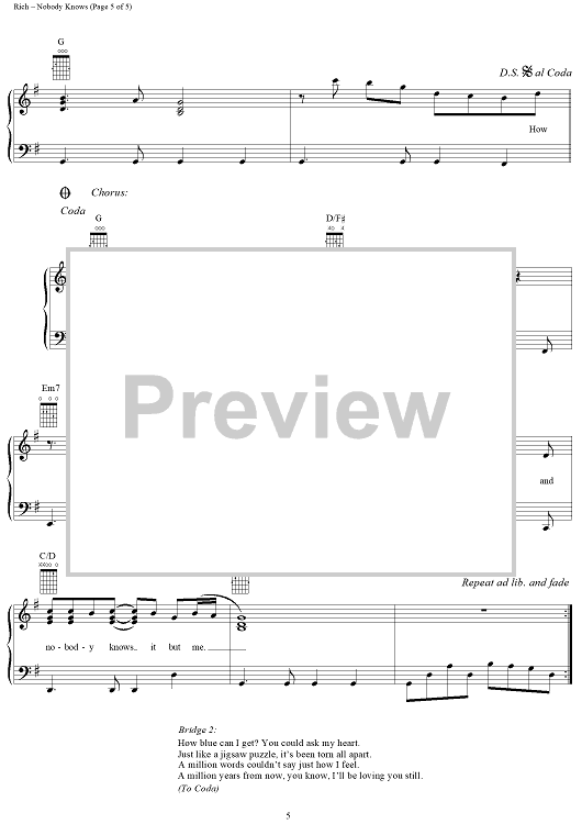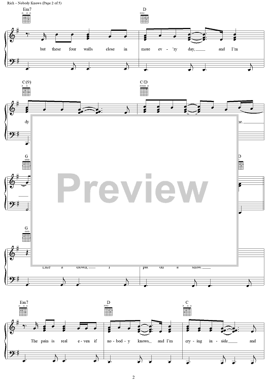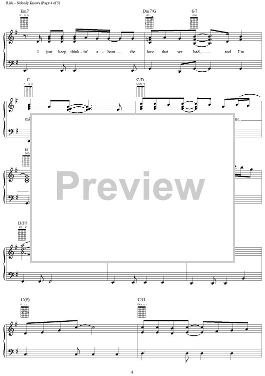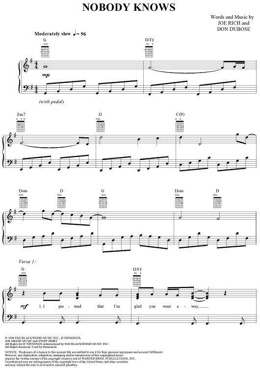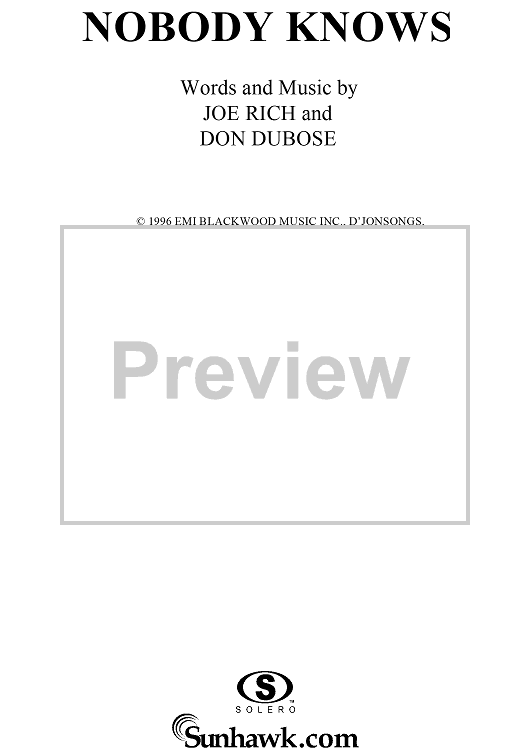 Digital Sheet Music for Nobody Knows by Kevin Sharp, Joe Rich, Don Dubose scored for Piano/Vocal/Chords; id:120807