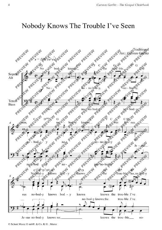 Digital Sheet Music for Nobody Knows the Trouble I've Seen by Carsten Gerlitz scored for Mixed Choir (satb); id:493294