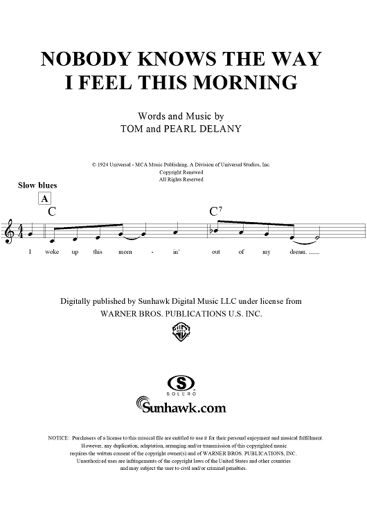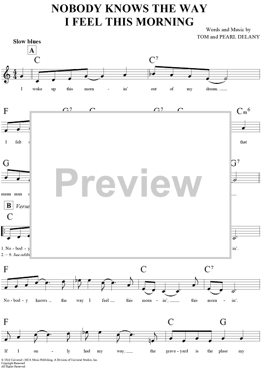 "Nobody Knows the Way I Feel This Morning" Sheet Music by Tom & Pearl Delaney