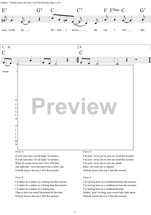 Digital Sheet Music for Nobody Knows the Way I Feel This Morning by Tom & Pearl Delaney scored for Lead Sheet; id:291538