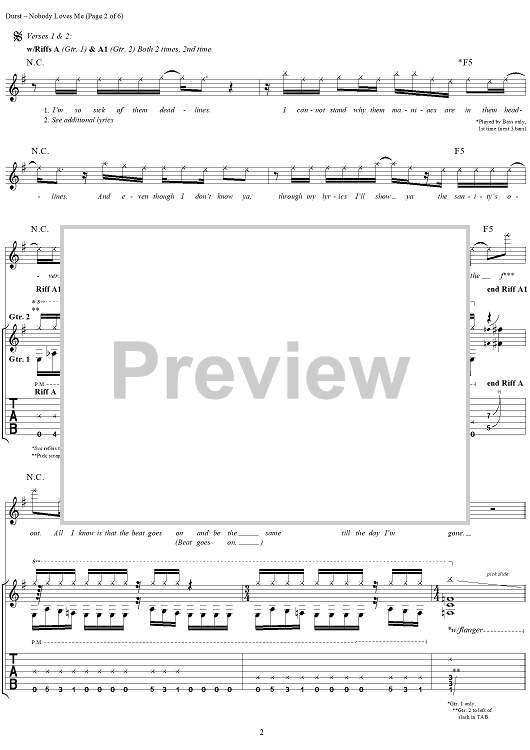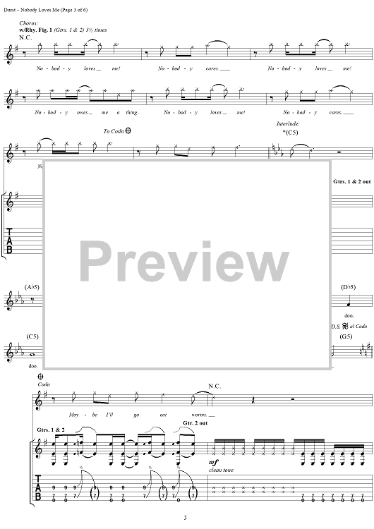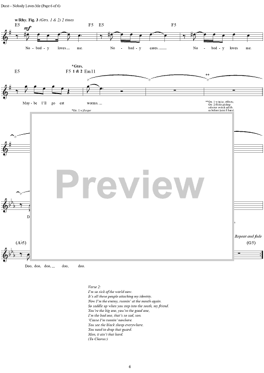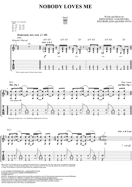 Digital Sheet Music for Nobody Loves Me by Wes Borland, Sam Rivers, John Otto, Fred Durst, Limp Bizkit scored for Guitar Tab/Vocal; id:189355