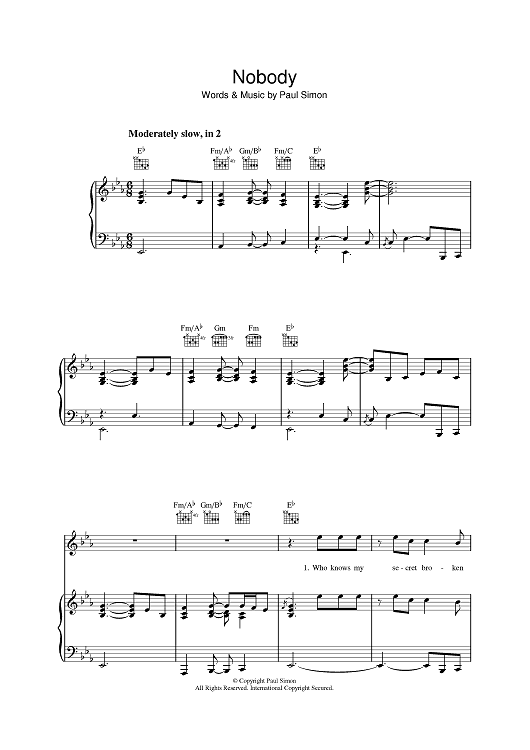 Digital Sheet Music for Nobody by Paul Simon scored for Piano/Vocal/Chords; id:390954