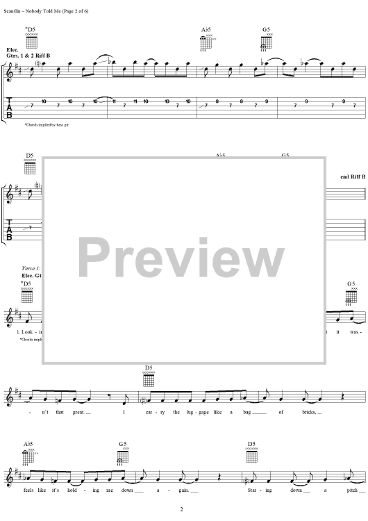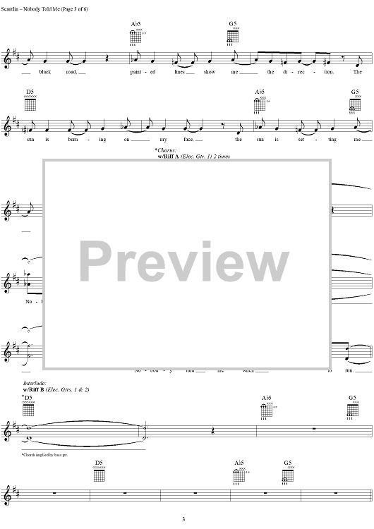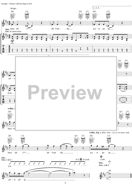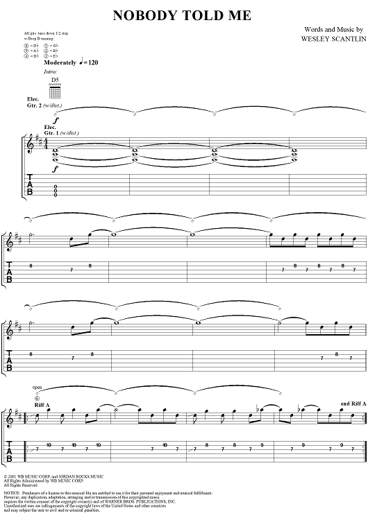 Digital Sheet Music for Nobody Told Me by Puddle Of Mudd, Wesley Scantlin scored for Guitar Tab/Vocal; id:288857
