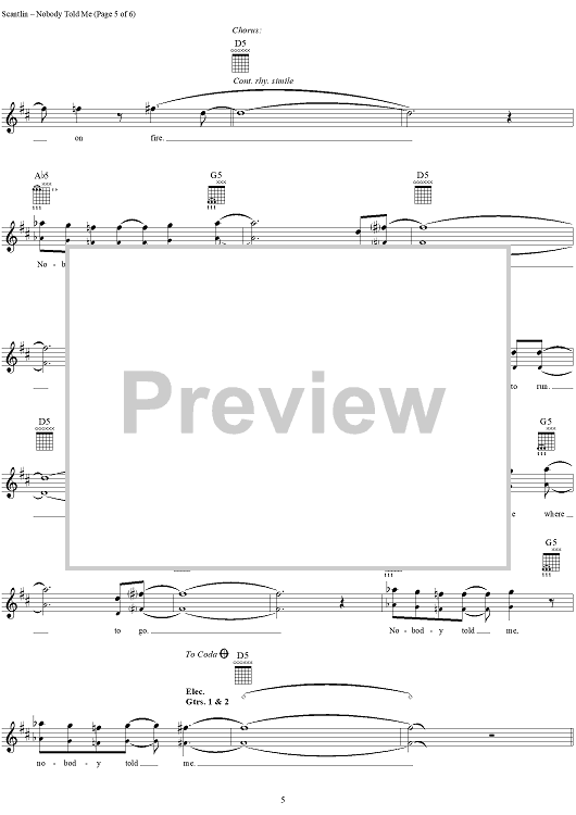 "Nobody Told Me" Sheet Music by Puddle Of Mudd