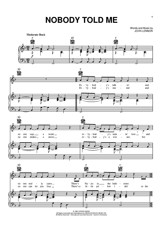 Digital Sheet Music for Nobody Told Me by John Lennon scored for Piano/Vocal/Chords; id:395426