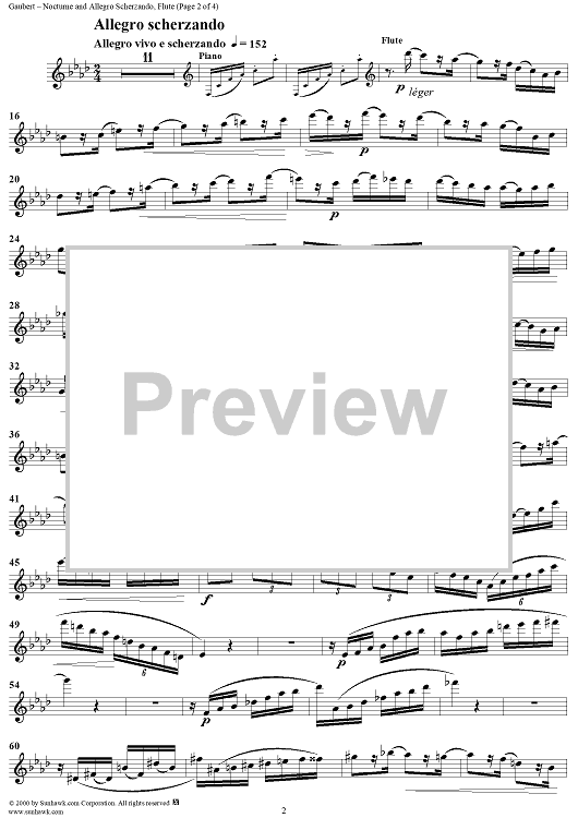 Digital Sheet Music for Nocturne and Allegro Scherzando - Flute by Philippe Gaubert scored for Flute/Piano; id:129006