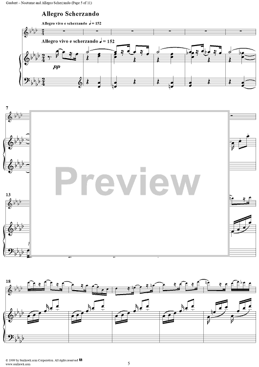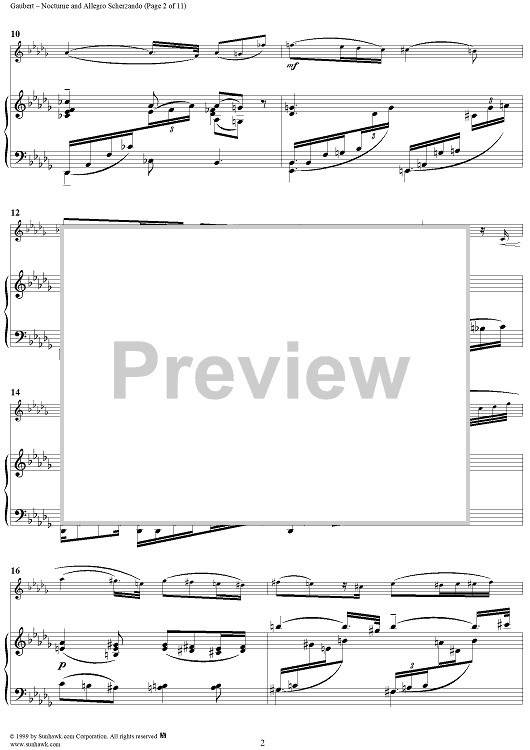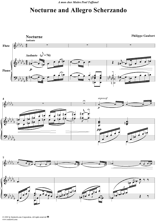 Digital Sheet Music for Nocturne and Allegro Scherzando - Piano Score by Philippe Gaubert scored for Flute/Piano; id:174870