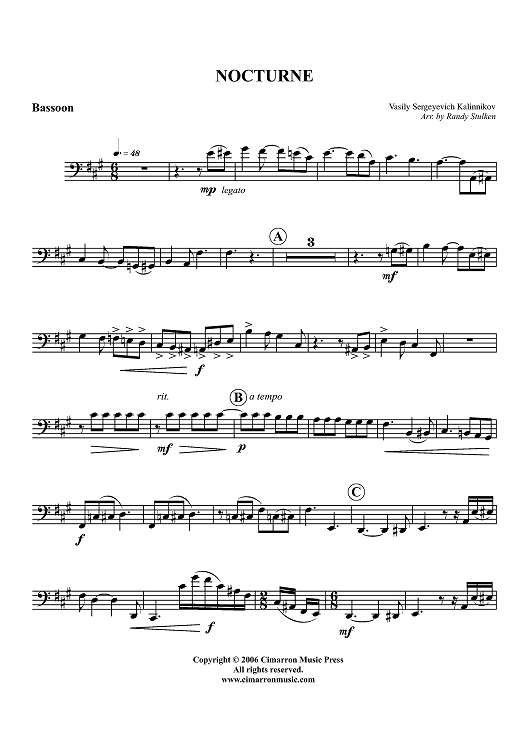 "Nocturne - Bassoon" Sheet Music by Vasily Sergeyevich Kalinnikov