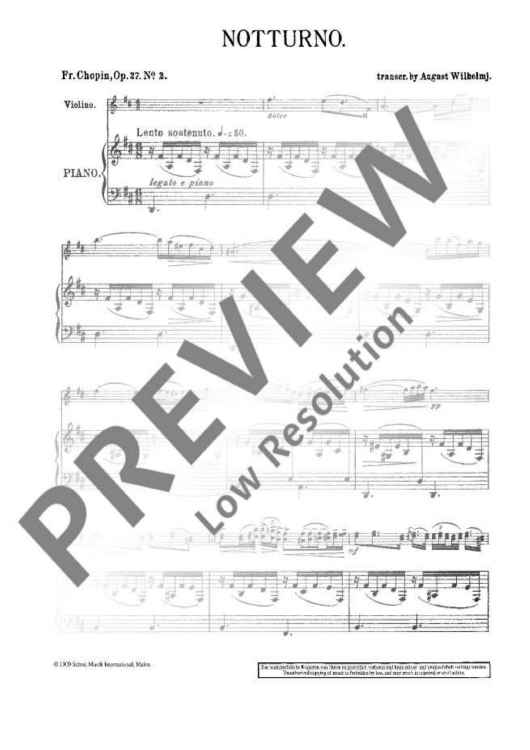 Digital Sheet Music for Nocturne D major by Frederic Chopin scored for Violin And Piano; id:477179