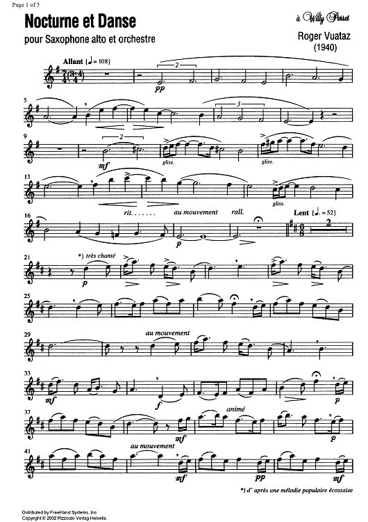 Digital Sheet Music for Nocturne et Danse Op.58 No. 2 - Alto Saxophone by Roger Vuataz scored for Alto Saxophone/Orchestra; id:351837