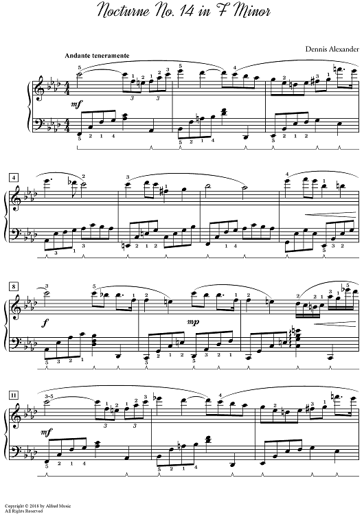 "Nocturne No. 14 in F Minor" Sheet Music by Dennis Alexander