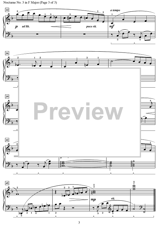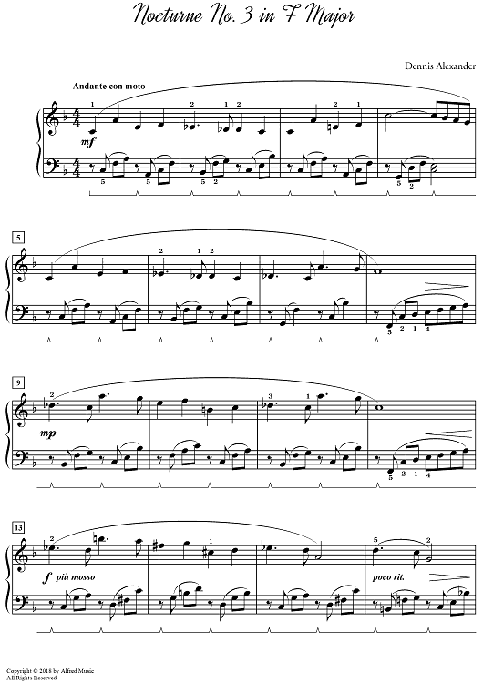 Digital Sheet Music for Nocturne No. 3 in F Major by Dennis Alexander scored for Piano Solo; id:469109