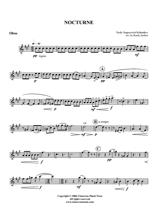 "Nocturne - Oboe" Sheet Music by Vasily Sergeyevich Kalinnikov