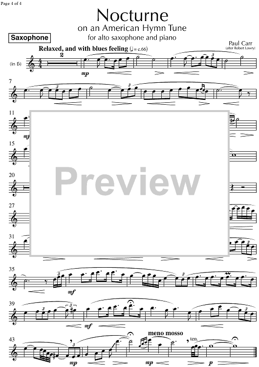 Digital Sheet Music for Nocturne on an American Hymn Tune by , Paul Carr scored for Alto Saxophone/Piano; id:322202