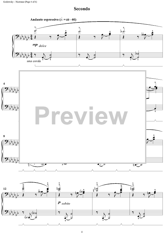 Digital Sheet Music for Nocturne by Leopold Godowsky scored for 1 Piano, 4 Hands; id:285061