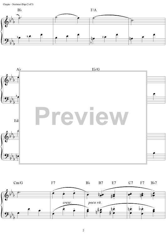 Digital Sheet Music for Nocturne by Frederic Chopin, Richard Bradley scored for Easy Piano; id:292909