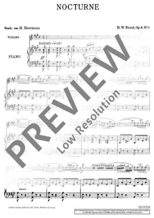Digital Sheet Music for Nocturne by Heinrich Wilhelm Ernst scored for Violin And Piano; id:481139