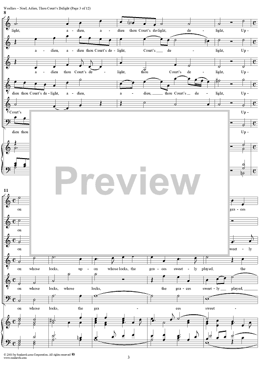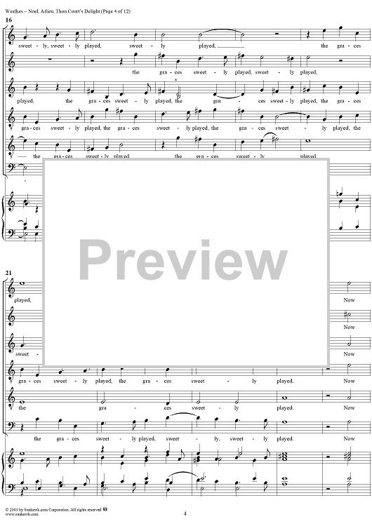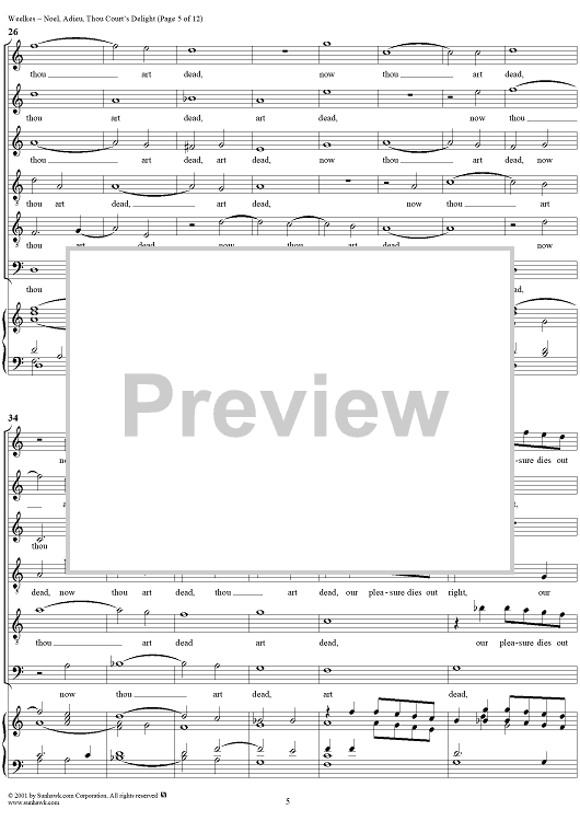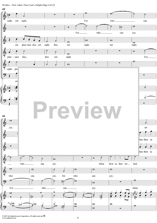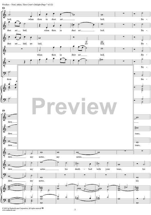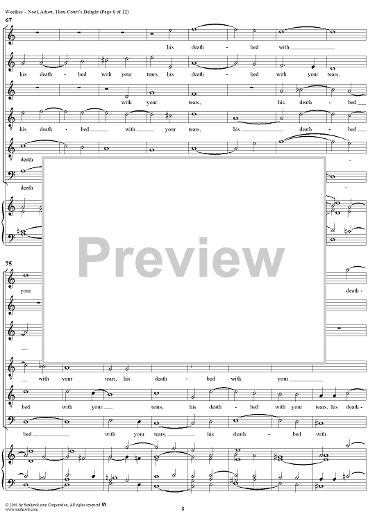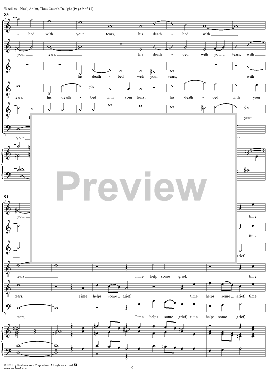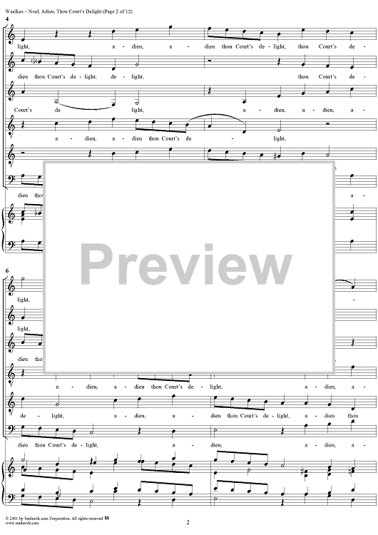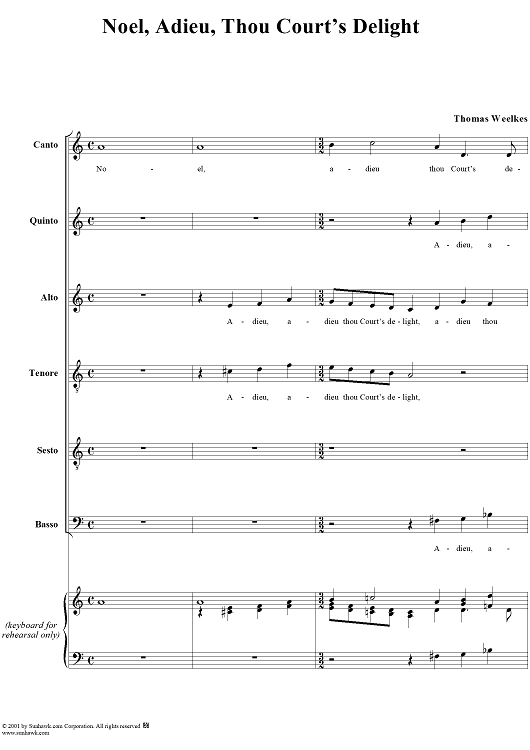 Digital Sheet Music for Noel, Adieu, Thou Court's Delight by Thomas Weelkes scored for Six-part Mixed Chorus; id:262107