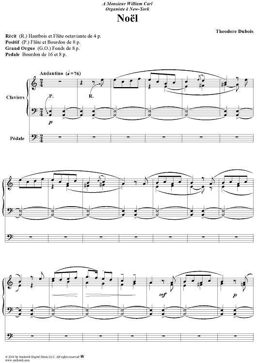 "Noël in A Minor" Sheet Music by Theodore Dubois