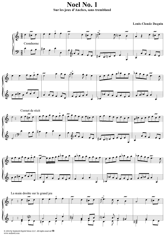 "Noel No. 1 - Sur les jeux d'Anches, sans tremblant" Sheet Music by Louis-Claude Daquin