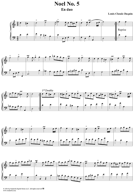 "Noel No. 5 - En duo" Sheet Music by Louis-Claude Daquin