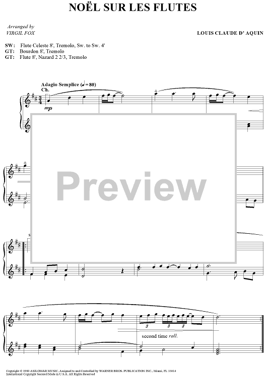 "Nöel Sur Les Flutes" Sheet Music by Louis-Claude d'Aquin