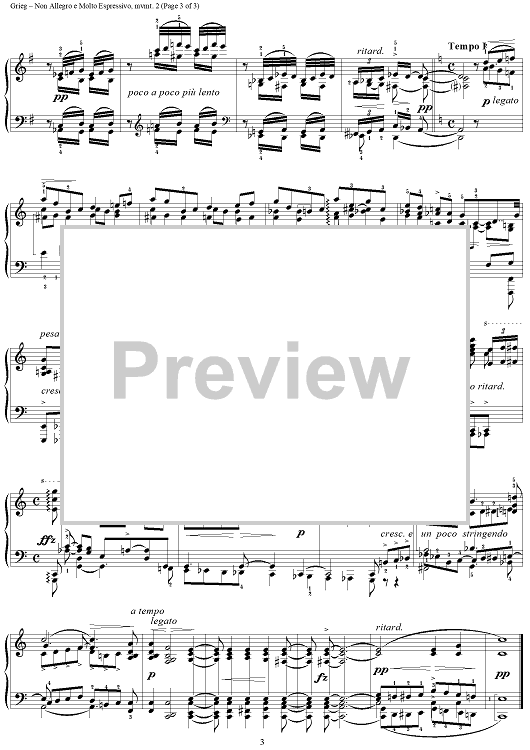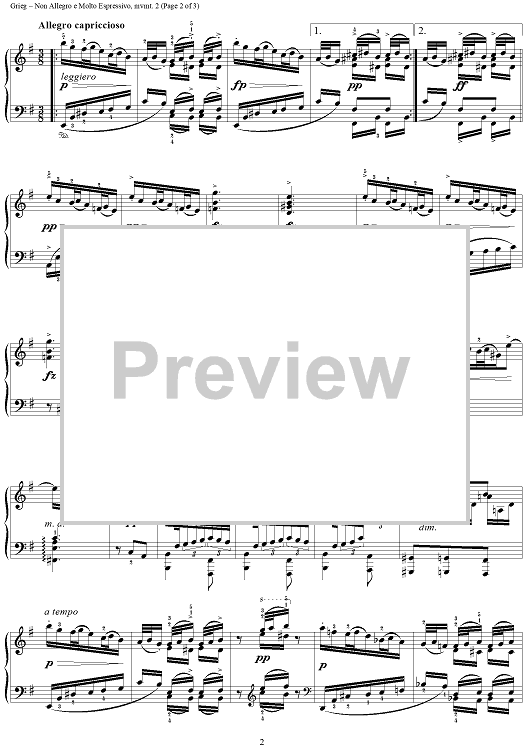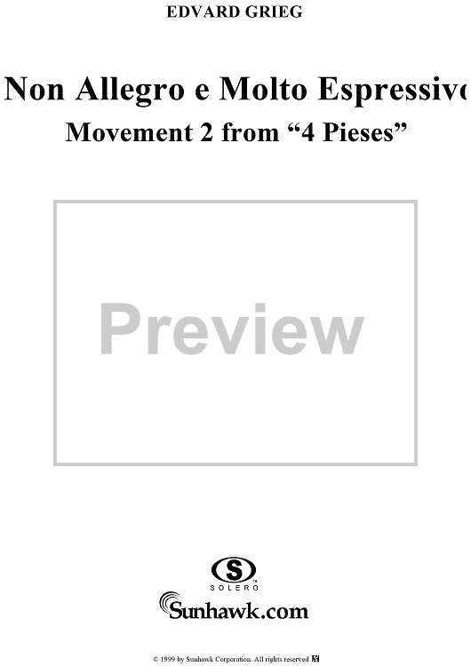 Digital Sheet Music for Non Allegro e Molto Espressivo - No. 2 from "4 Pieces" Op. 1 by Edvard Grieg scored for Piano Solo; id:267607