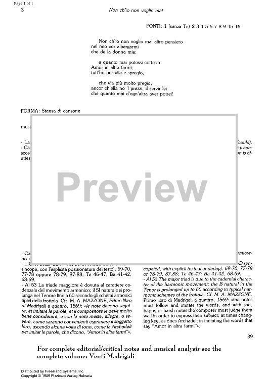 "Non ch'io non voglio mai from 20 Madrigali - Notes" Sheet Music by Jacques Arcadelt