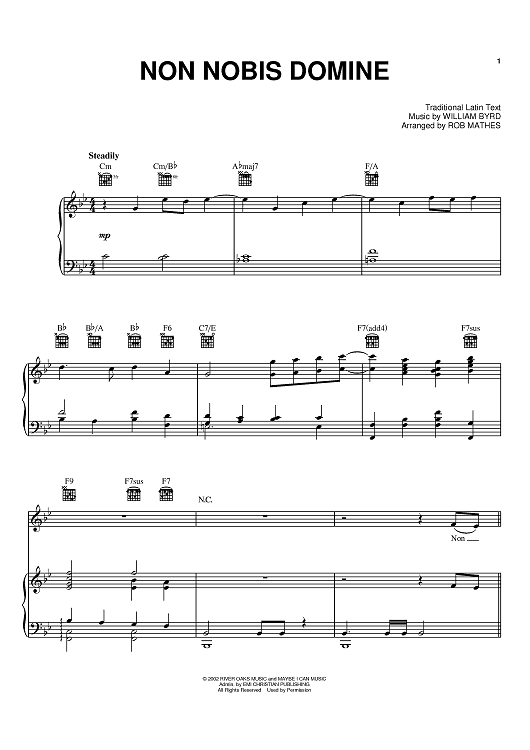 Digital Sheet Music for Non Nobis Domine by Steve Green, William Byrd, Rob Mathes, Traditional scored for Piano/Vocal/Chords; id:369080