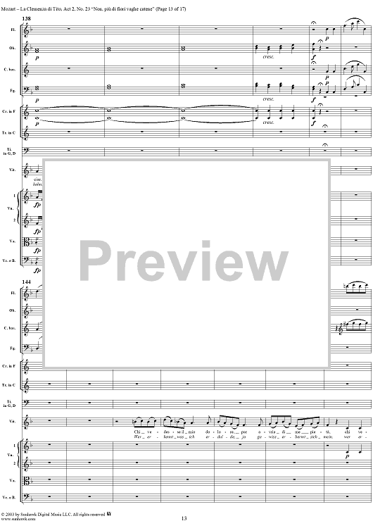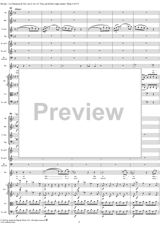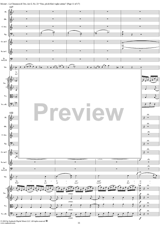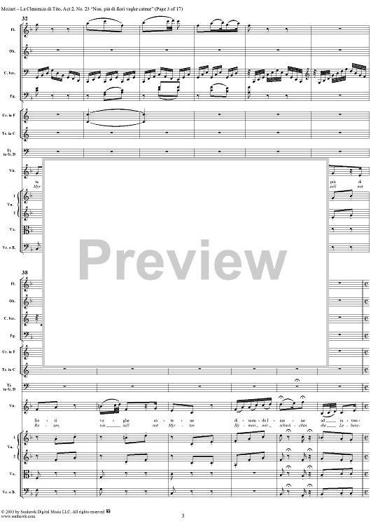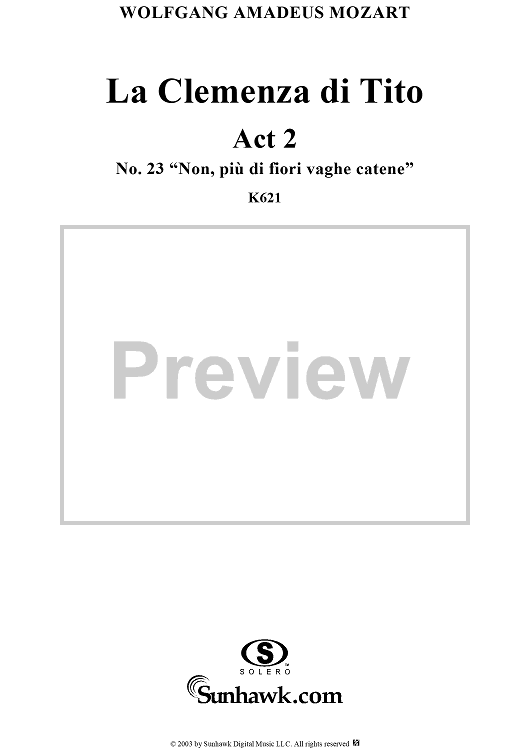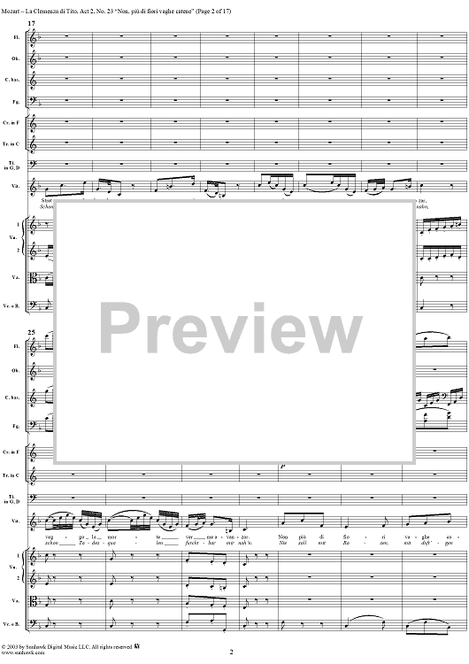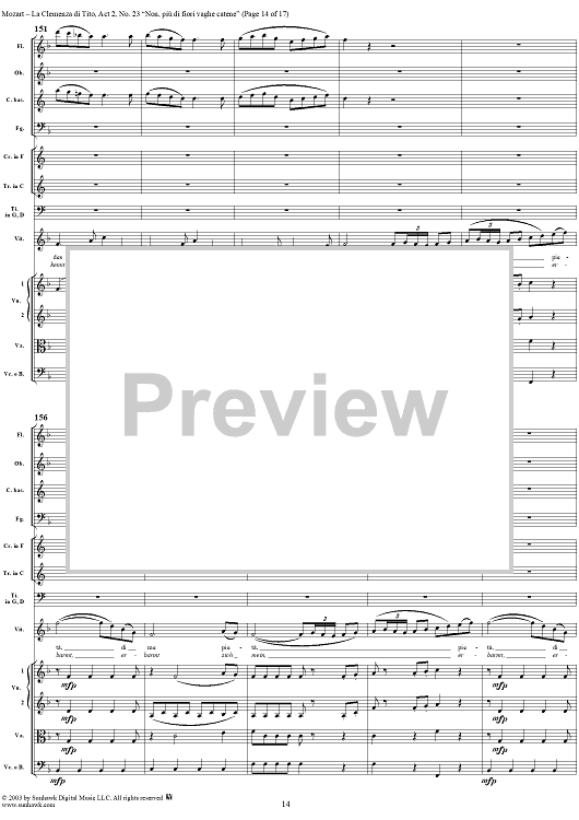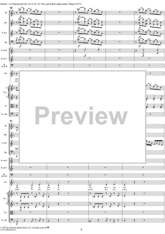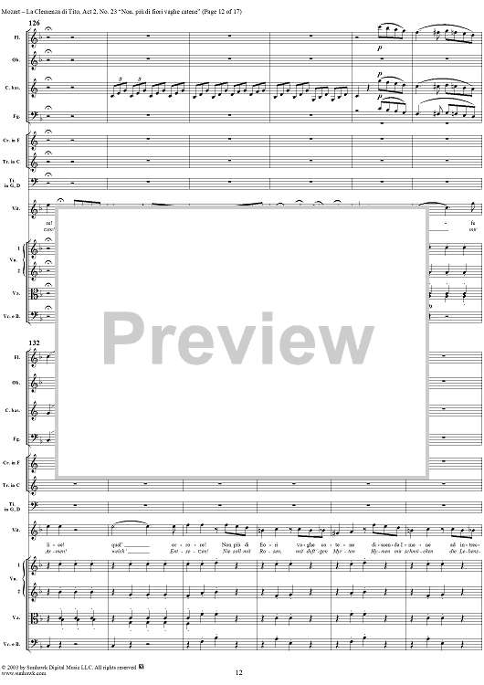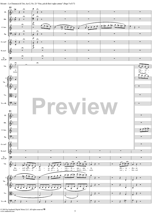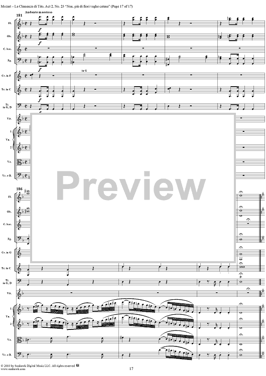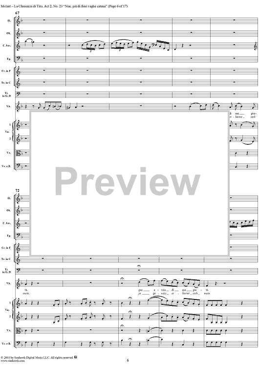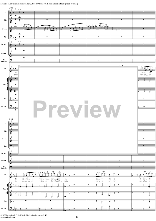 Digital Sheet Music for "Non più di fiori vaghe catene", No. 23 from "La Clemenza di Tito", Act 2 (K621) - Full Score by Wolfgang Amadeus Mozart scored for Voice and Orchestra; id:291622