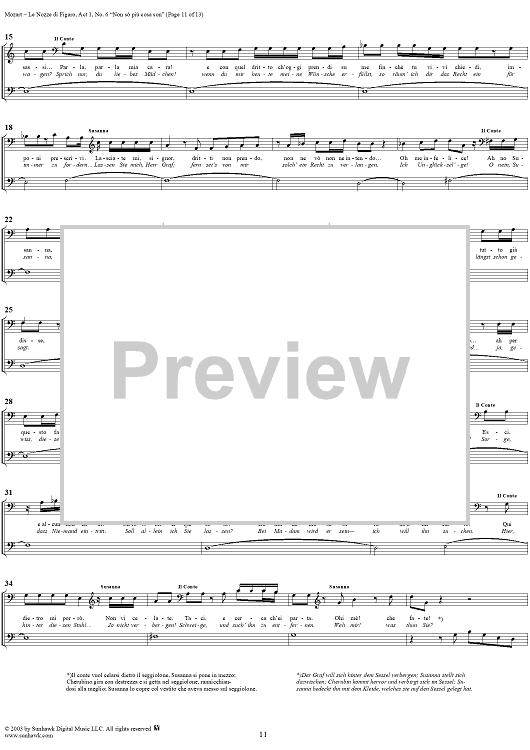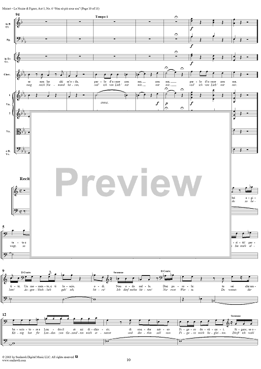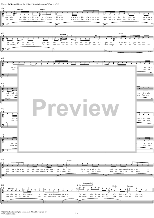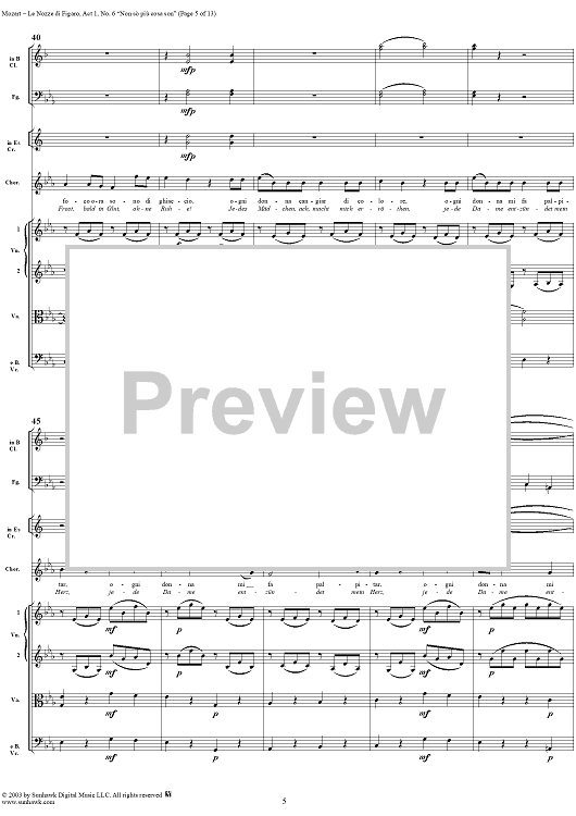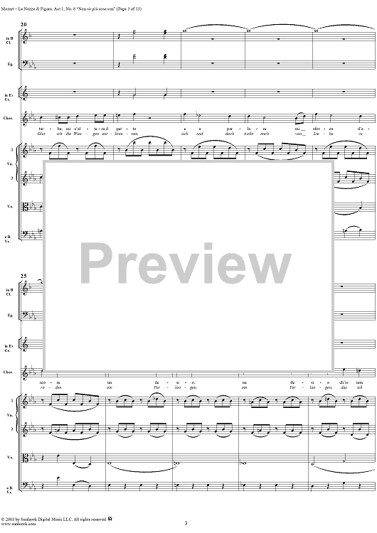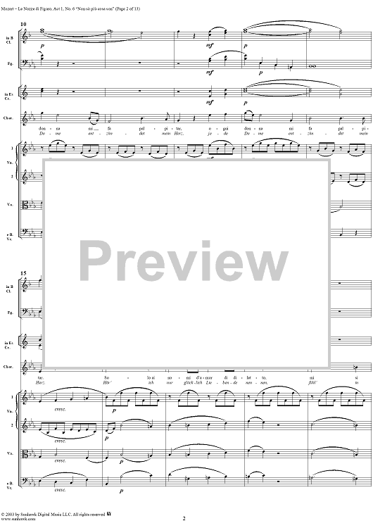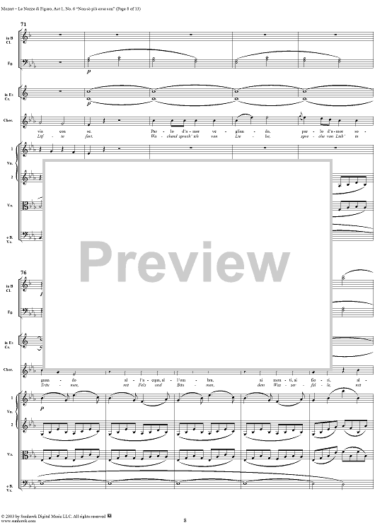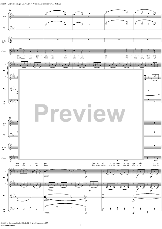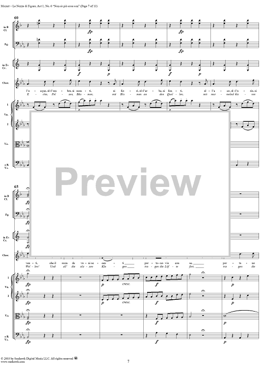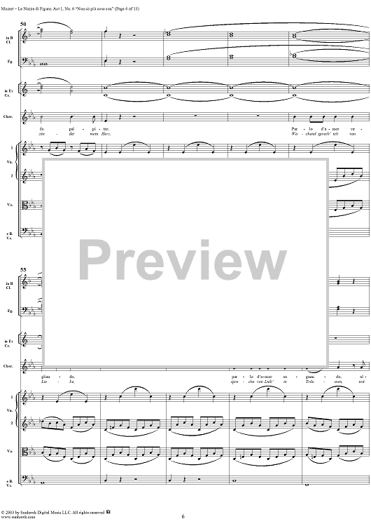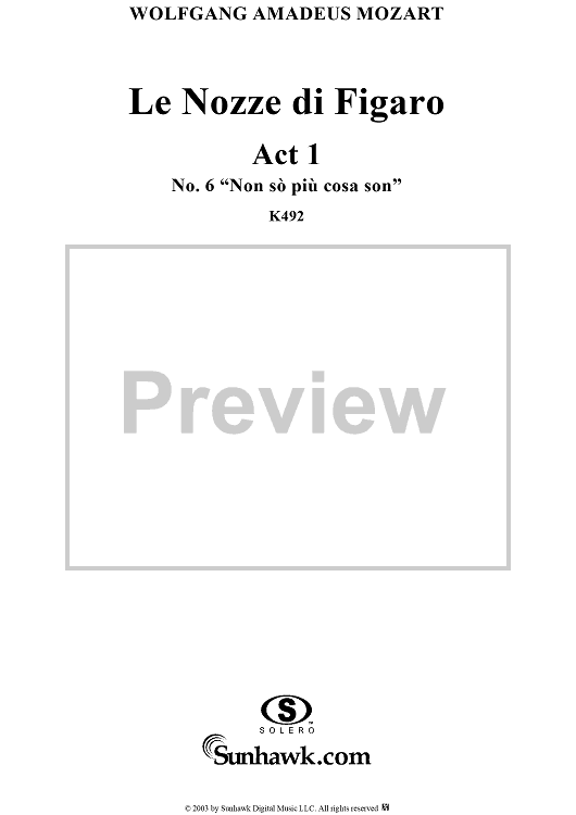 Digital Sheet Music for "Non sò più cosa son", No. 6 from "Le Nozze di Figaro", Act 1, K492 - Full Score by Wolfgang Amadeus Mozart scored for Voice and Orchestra; id:292186