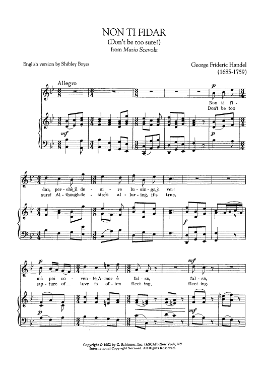 Digital Sheet Music for Non Ti Fidar (Don't be too Sure) from Muzio Scevola by George Frideric Handel, Shibley Boyes scored for Piano/Vocal; id:466750